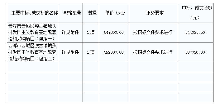 云浮市云城區(qū)腰古鎮(zhèn)城頭村愛國主義教育基地配套設(shè)施采購項目中標(biāo)公告