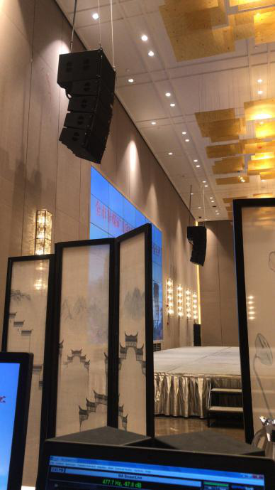 酒店牡丹廳為729平米,高8米無(wú)柱宴會(huì)廳,配置了雙十寸線陣列音箱,與演出級(jí)別專業(yè)功放、搭配英國(guó)品牌Studiomaster的Digileve系列前級(jí)處理系統(tǒng),組成一套完美音效、人聲表現(xiàn)突出的高端擴(kuò)聲系統(tǒng)。工程達(dá)到極高標(biāo)準(zhǔn),為酒店搭建起一套設(shè)備先進(jìn)、性能穩(wěn)定可靠專業(yè)擴(kuò)聲系統(tǒng),得到使用方的一致好評(píng)!